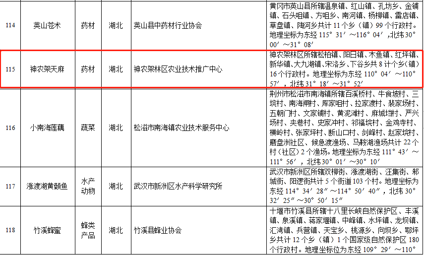 神農(nóng)架天麻,由神農(nóng)架林區(qū)農(nóng)業(yè)技術(shù)推廣中心申報實施地理標(biāo)志登記保護,經(jīng)過初審、專家評審,認為符合農(nóng)產(chǎn)品地理標(biāo)志登記程序和條件。登記的保護范圍為:神農(nóng)架林區(qū)所轄松柏鎮(zhèn)、陽日鎮(zhèn)、木魚鎮(zhèn)、紅坪鎮(zhèn)、新華鎮(zhèn)、大九湖鎮(zhèn)、宋洛鄉(xiāng)、下谷鄉(xiāng)共8個鄉(xiāng)鎮(zhèn)16個行政村。地理坐標(biāo)為東經(jīng)110°04′~110°57′,北緯31°18′~31°52′。此次,神農(nóng)架天麻農(nóng)產(chǎn)品地理標(biāo)志的成功申報,將大大提高神農(nóng)架天麻的品牌效應(yīng)和市場競爭力。