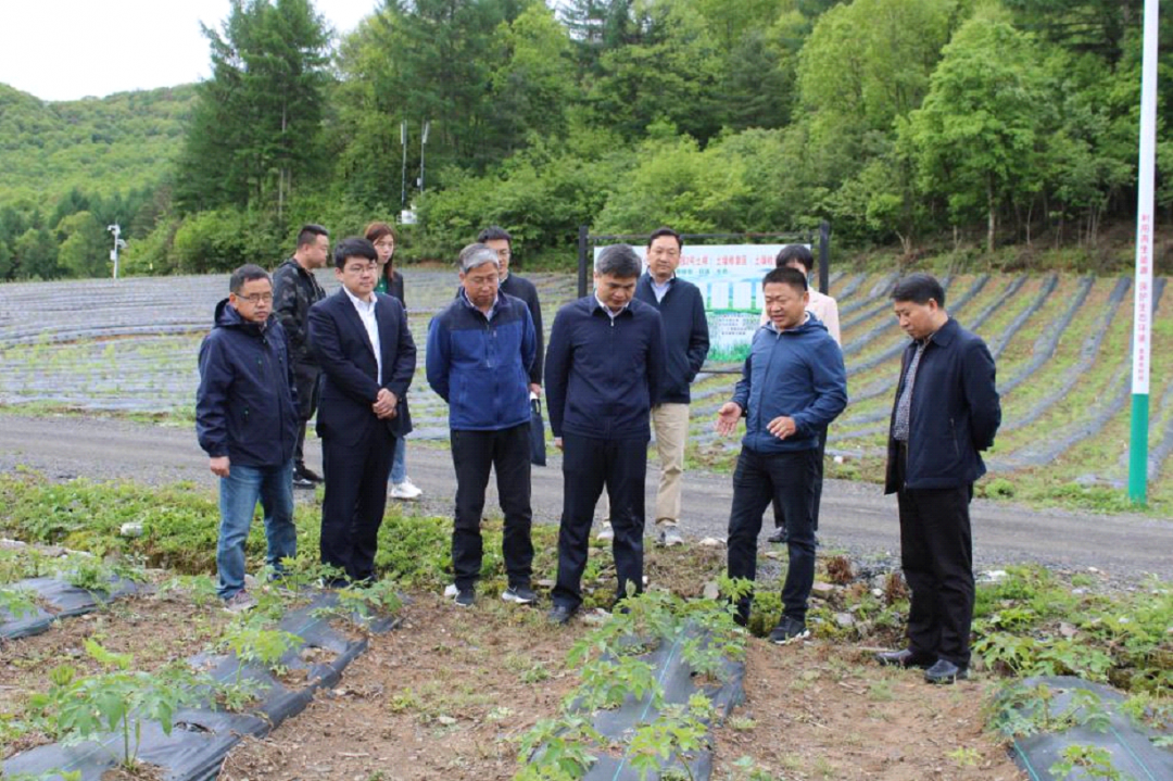 丨林區(qū)黨委書記馮偉(中)一行在公司野生名貴中藥材訓(xùn)育基地神農(nóng)藥園