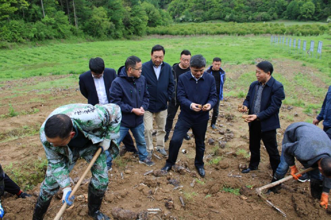 丨林區(qū)黨委書記馮偉(中)一行在黃龍堰基地天麻采挖現(xiàn)場