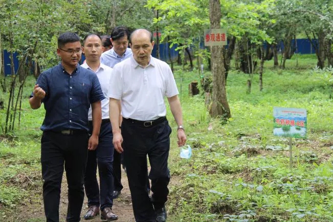 ▲省領(lǐng)導(dǎo)一行參觀神藥林下種植中藥材示范園“神農(nóng)藥園”,了解林下種植優(yōu)勢(shì)、后期林下種植規(guī)劃。神藥公司技術(shù)經(jīng)理張俊介紹神藥公司致力打造黃龍堰生態(tài)示范園,并建設(shè)林下種植示范園“神農(nóng)藥園”,進(jìn)行試驗(yàn)性種苗區(qū)種植及瀕危名貴野生品種的訓(xùn)育。
