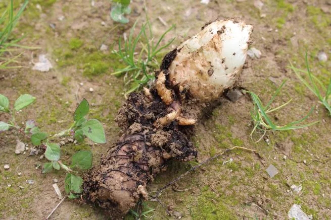 ▲現(xiàn)場(chǎng)采挖天麻,查看天麻長(zhǎng)勢(shì)。神藥公司技術(shù)經(jīng)理張俊為領(lǐng)導(dǎo)們現(xiàn)場(chǎng)講解神藥選擇共生蜜環(huán)菌人工菌棒代替原始菌材新型技術(shù)的優(yōu)勢(shì),大幅減少生態(tài)伐木,有效縮短天麻的種植周期,生態(tài)效益和經(jīng)濟(jì)效益明顯。