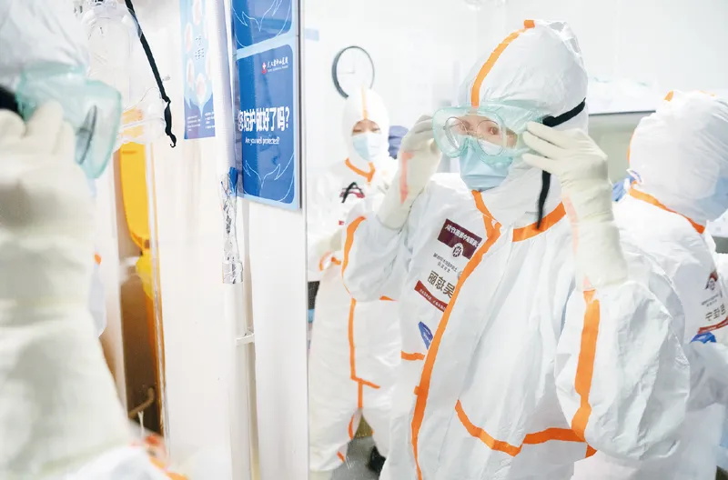 2020年3月29日,第四批國家中醫(yī)醫(yī)療隊(上海)在武漢雷神山醫(yī)院結束了最后一班崗,3月31日全隊返回上海。該醫(yī)療隊由上海中醫(yī)藥大學附屬龍華醫(yī)院、上海中醫(yī)藥大學附屬市中醫(yī)醫(yī)院的122名醫(yī)護人員組成,負責雷神山醫(yī)院感染三科五病區(qū)。圖為3月29日,在武漢雷神山醫(yī)院,該醫(yī)療隊一名隊員準備進入隔離病房污染區(qū)。 新華社記者 才揚/攝