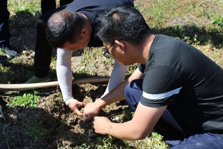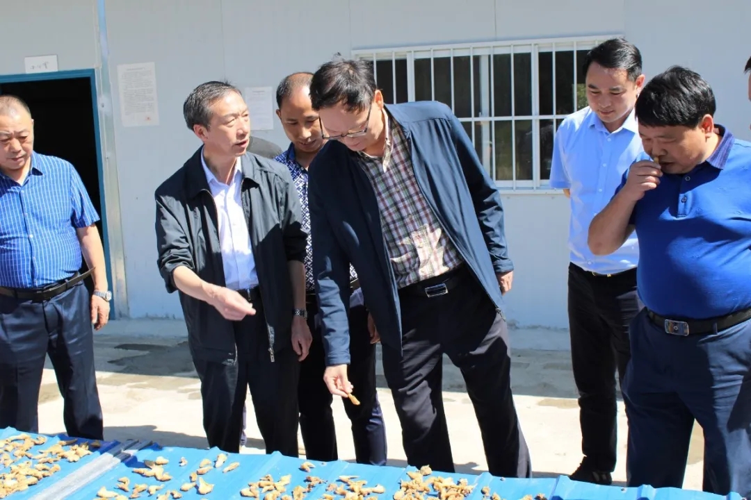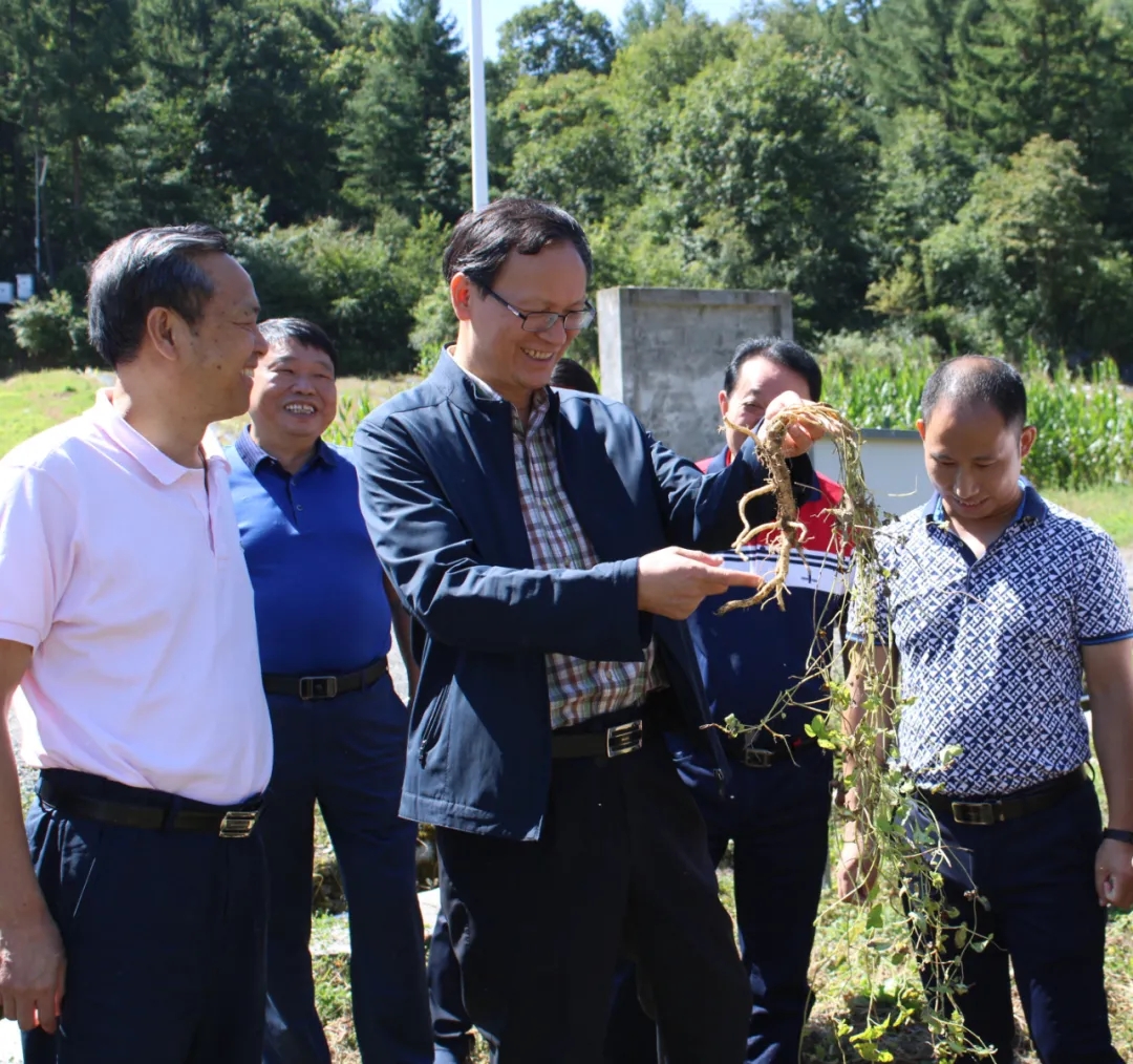 ▲領(lǐng)導(dǎo)們對公司天麻育種基地,黨參、黃精、貝母、天麻種植區(qū)進行了現(xiàn)場采挖查看。
