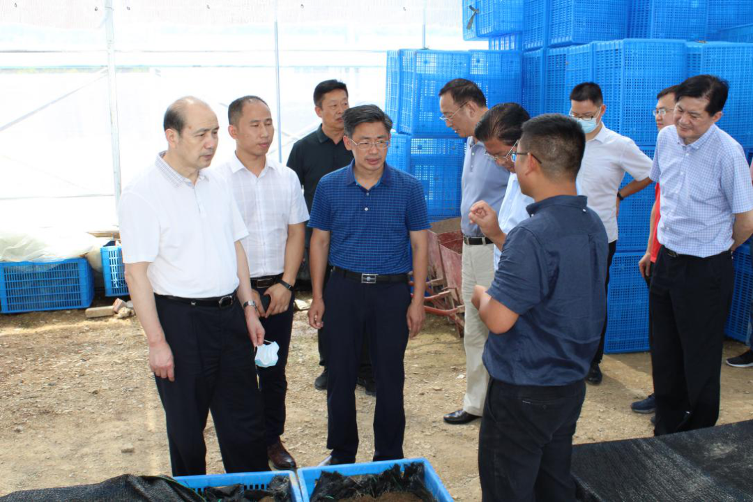 ▲神藥公司技術(shù)經(jīng)理張俊(右二)向省人大常委會(huì)委員、財(cái)經(jīng)委主任委員張漢濤(左一)講解天麻育種的過程和產(chǎn)生的效益。
