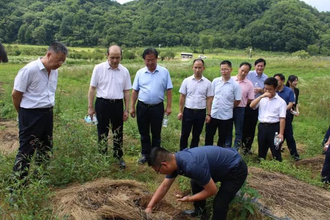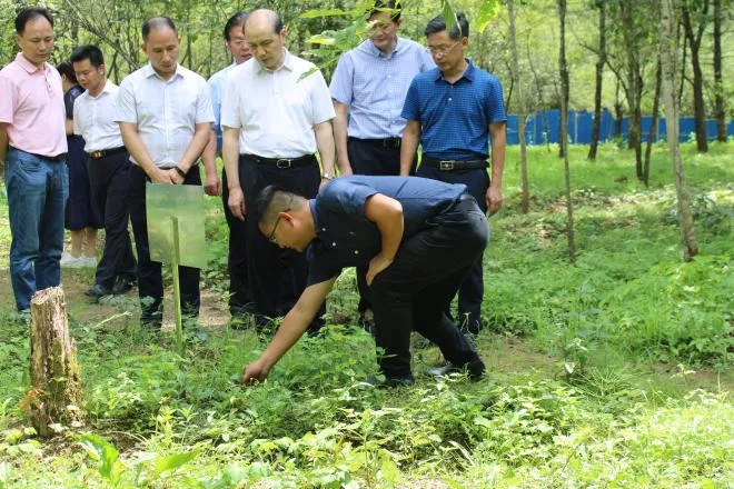 ▲省領(lǐng)導(dǎo)一行參觀神藥林下種植中藥材示范園“神農(nóng)藥園”,了解林下種植優(yōu)勢(shì)、后期林下種植規(guī)劃。神藥公司技術(shù)經(jīng)理張俊介紹神藥公司致力打造黃龍堰生態(tài)示范園,并建設(shè)林下種植示范園“神農(nóng)藥園”,進(jìn)行試驗(yàn)性種苗區(qū)種植及瀕危名貴野生品種的訓(xùn)育。